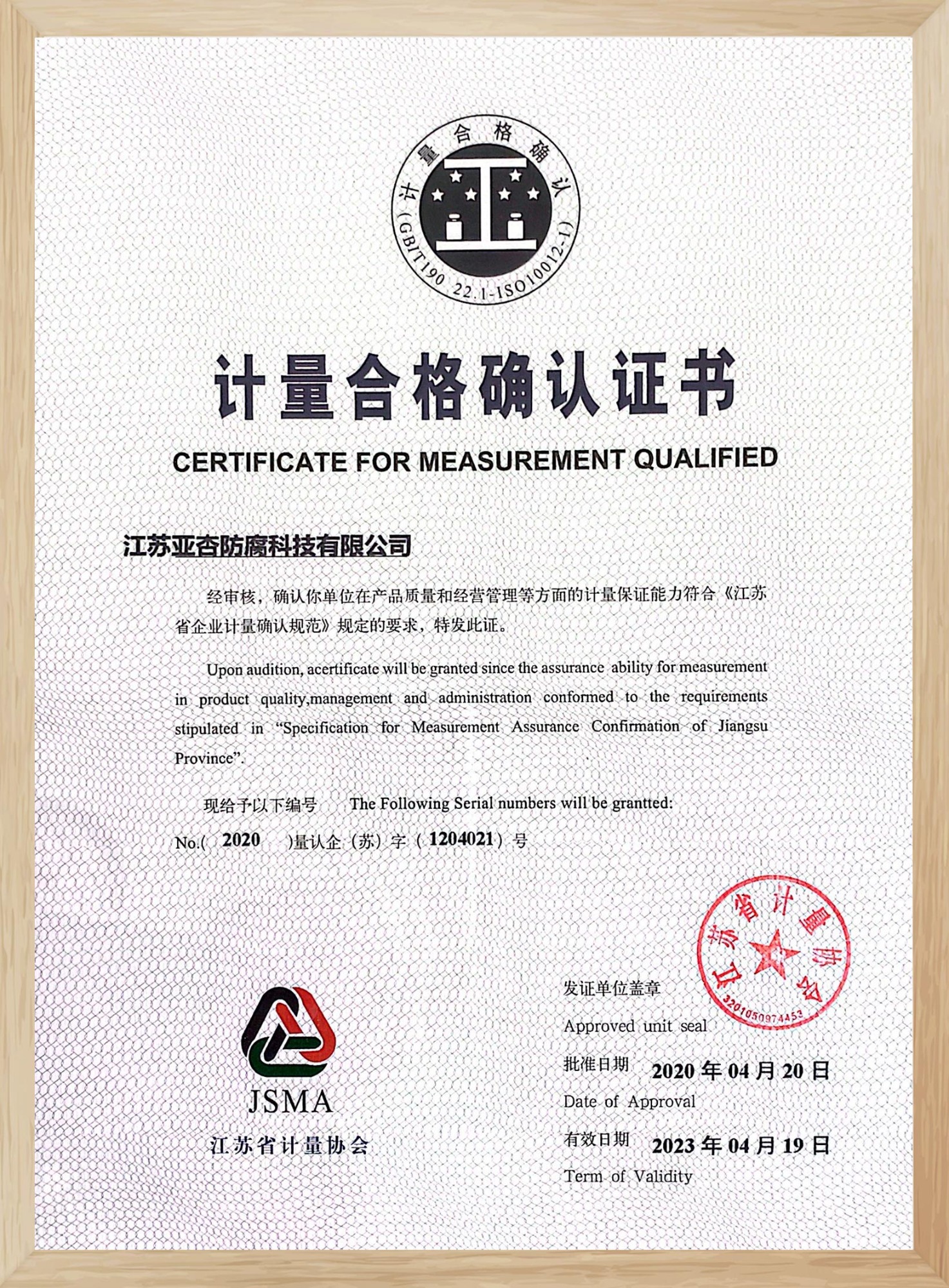 計量合格確認證書